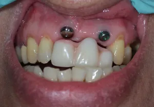 Patient HG had two missing front teeth. I placed the implants abutments and crowns. I am happy with the resul
